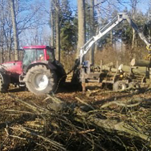 Fældning af træer, rydning af stier, skovning, udkørsel af flis